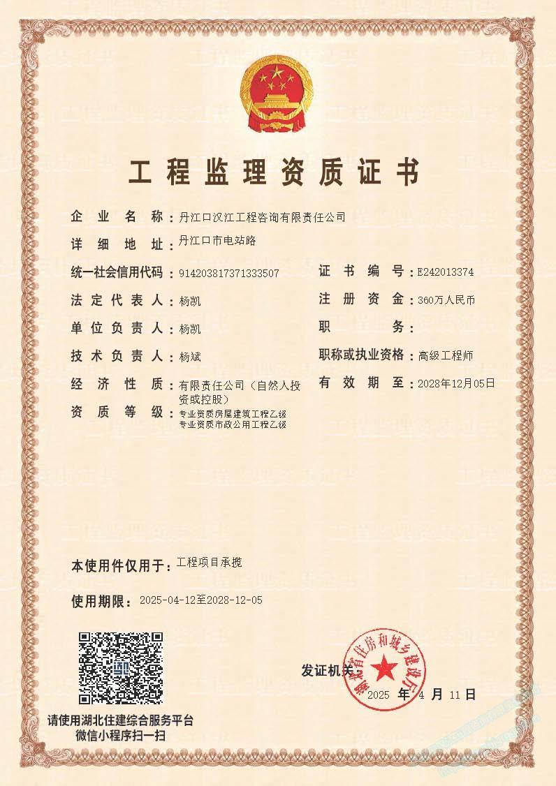 (原漢江綜合開發(fā)公司水利水電監(jiān)理中心)成立于 1989年3月,1993年6月經(jīng)水利部審批成為首批注冊監(jiān)理單位 (隸屬于長江水利委員會), 注冊資本 360萬元 。公司位于湖北省十堰市丹江口市電站路。公司目前擁有水利部頒發(fā)的 水利工程施工監(jiān)理甲級 、 水土保持工程施工監(jiān)理 乙 級 資質(zhì) ;住建部頒發(fā)的 房屋建筑 、 市政公用工程監(jiān)理 乙 級資質(zhì) 。 可獨(dú)立承擔(dān) 各類水利水電工程 、 一般工業(yè)與民用建筑工程監(jiān)理 , 土地整治 , 招標(biāo)代理 、 技術(shù)咨詢 等業(yè)務(wù)。公司實(shí)行董事會領(lǐng)導(dǎo)下的總經(jīng)理負(fù)責(zé)制,下設(shè)辦公室、經(jīng)營部、財(cái)務(wù)部、工程技術(shù)部等職能部門。……